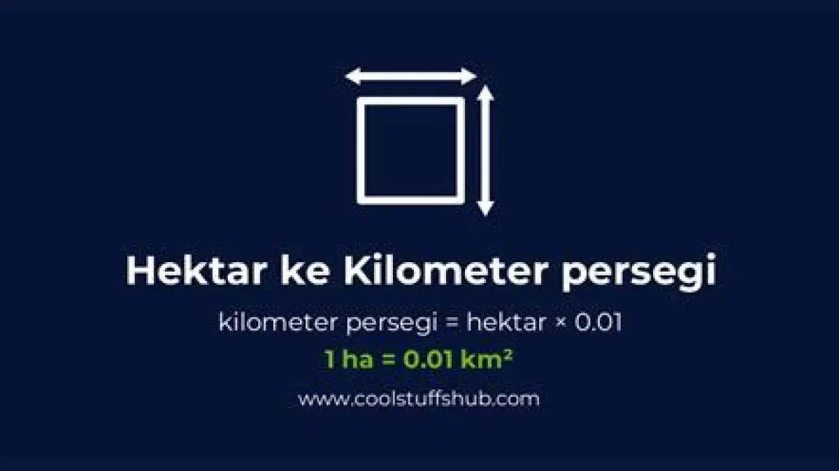 Jadi, jika Anda memiliki lahan seluas 100 hektar, maka luasnya adalah 100 ha x 0,01 km²/ha = 1 km²