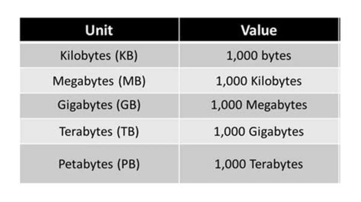 - Terabyte (TB): 1 TB = 1.024 GB. Hard disk eksternal atau laptop modern biasanya memiliki kapasitas beberapa TB.
