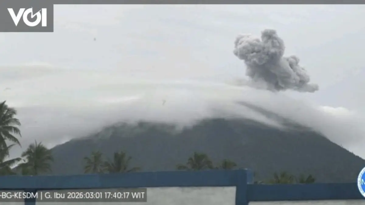Pusat Vulkanologi dan Mitigasi Bencana Geologi (PVMBG) melaporkan terjadinya erupsi Gunung Ibu di Kabupaten Halmahera Barat, Maluku Utara pada Minggu, 1 Maret 2026, pukul 17.37 WIT.