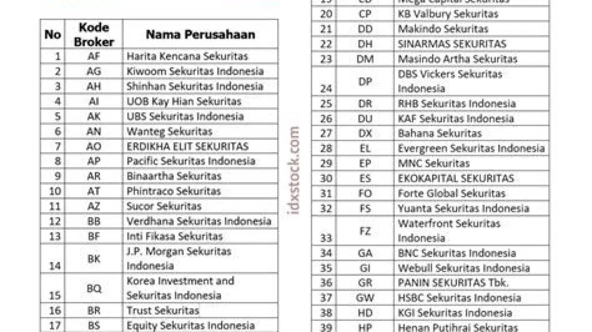 Daftar Kode Broker Saham Indonesia Terlengkap (Update Terbaru)