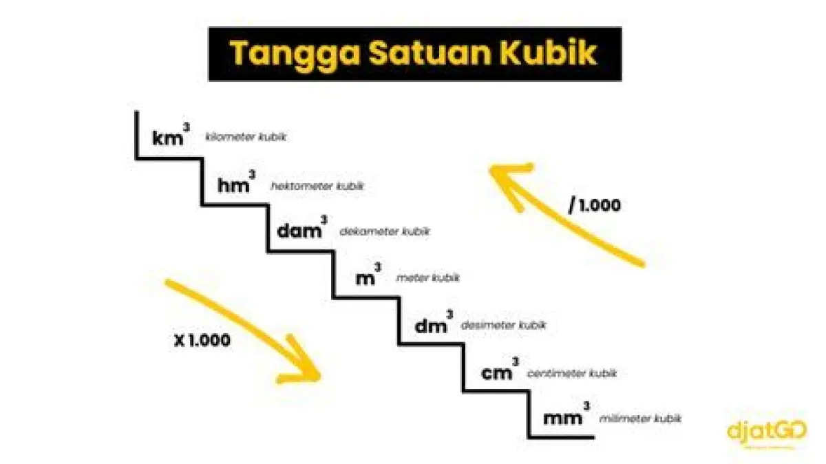 - Volume: Ukuran ruang yang ditempati suatu benda. Dalam sistem metrik, volume biasanya diukur dalam meter kubik (m³) atau sentimeter kubik (cm³). 1 meter kubik sama dengan 1000 liter.