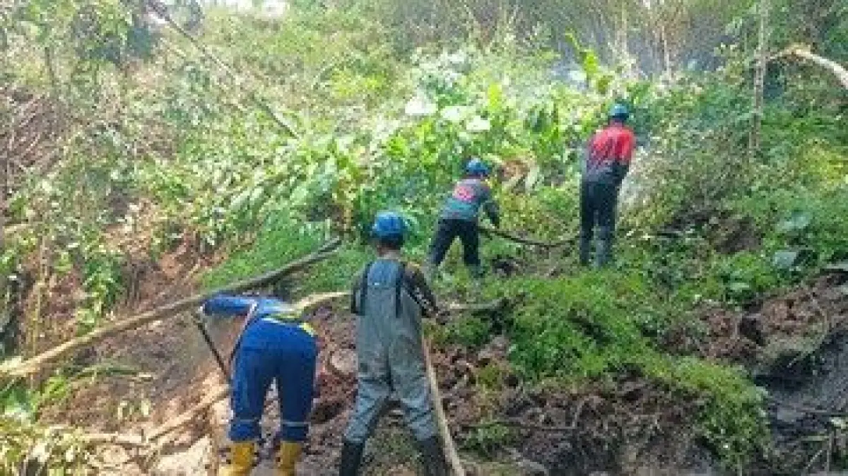"Tadi longsor karena memang intensitas hujan tinggi. Lahan sawah ada kebun juga longsor menimpa jalan penghubung dua kecamatan," ujar Iptu Mulyadi saat memberikan keterangan terkait kondisi di lapangan.
