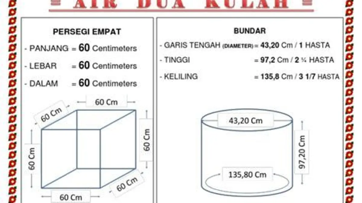 Pernah dengar istilah "2 kulah" tapi bingung seberapa banyak air yang dimaksud? Istilah ini sering muncul dalam pembahasan fiqih, khususnya terkait air yang sah digunakan untuk bersuci. Ukuran 2 kulah menjadi penting karena menentukan apakah air tersebut bisa dianggap mutlak (suci dan mensucikan) atau tidak. Jadi, berapa sih sebenarnya ukuran 2 kulah itu dalam satuan sentimeter (cm)?